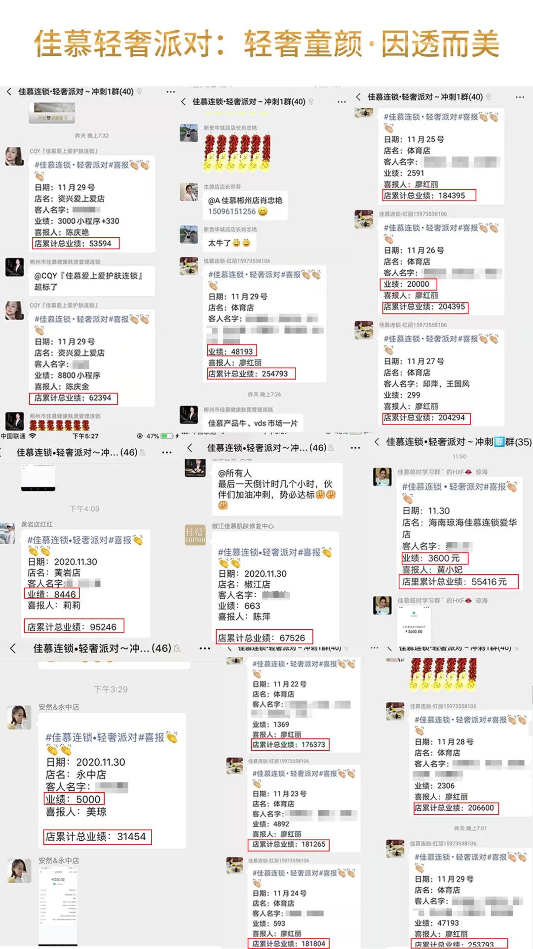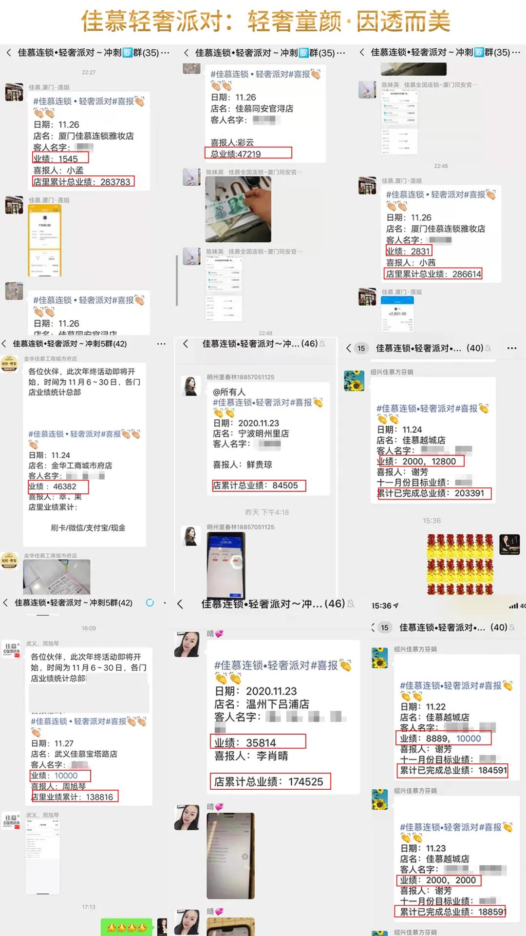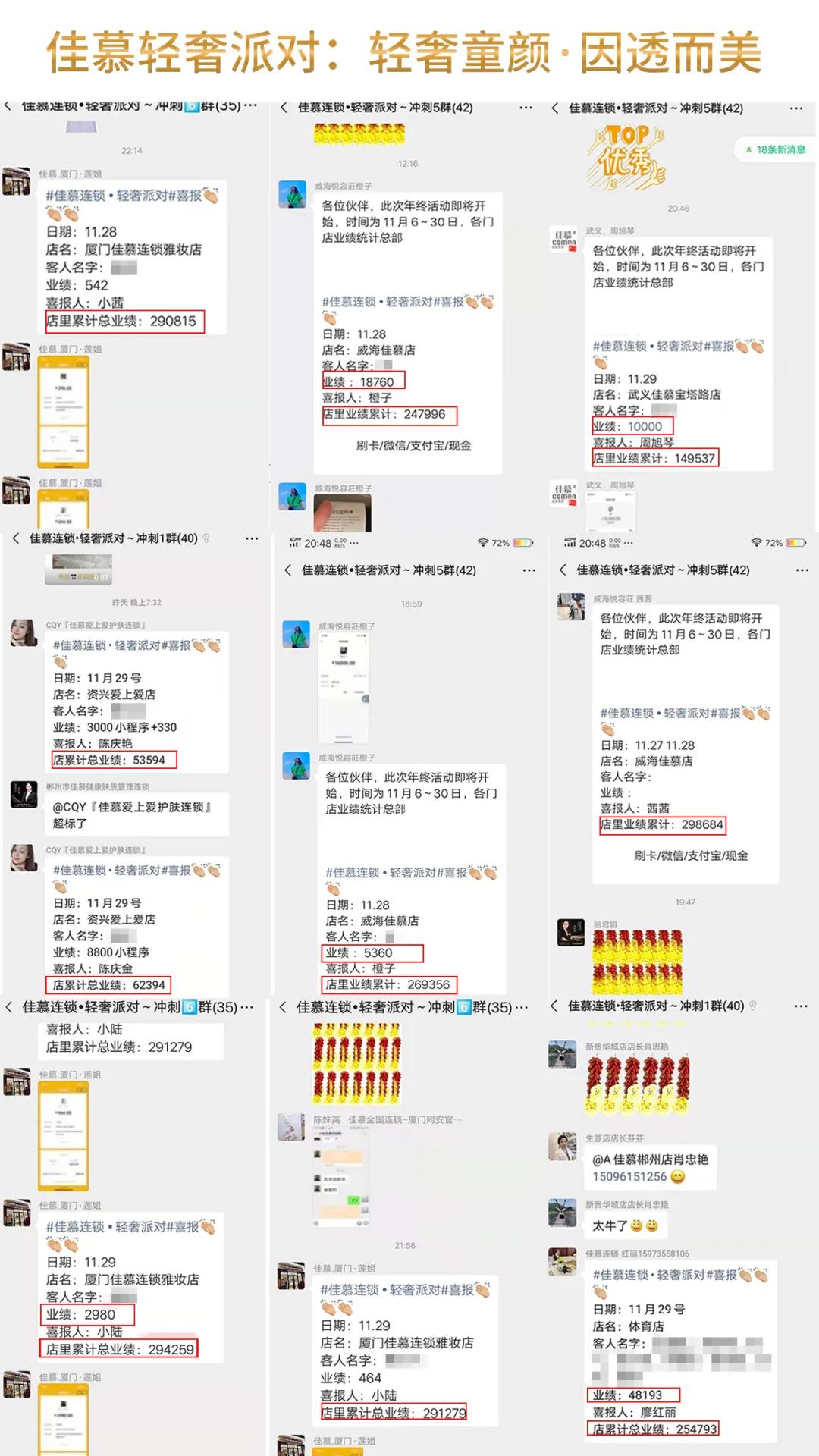 《佳慕輕奢派對 輕奢童顏·因透而美》活動于11月6日拉開帷幕,11月30日完美收官!在這25天里,全國各地佳慕專營店為慕粉舉辦了一場精彩的“輕奢派對 ”活動,深受全國新老慕粉的喜愛與擁簇!業績再次大爆破!