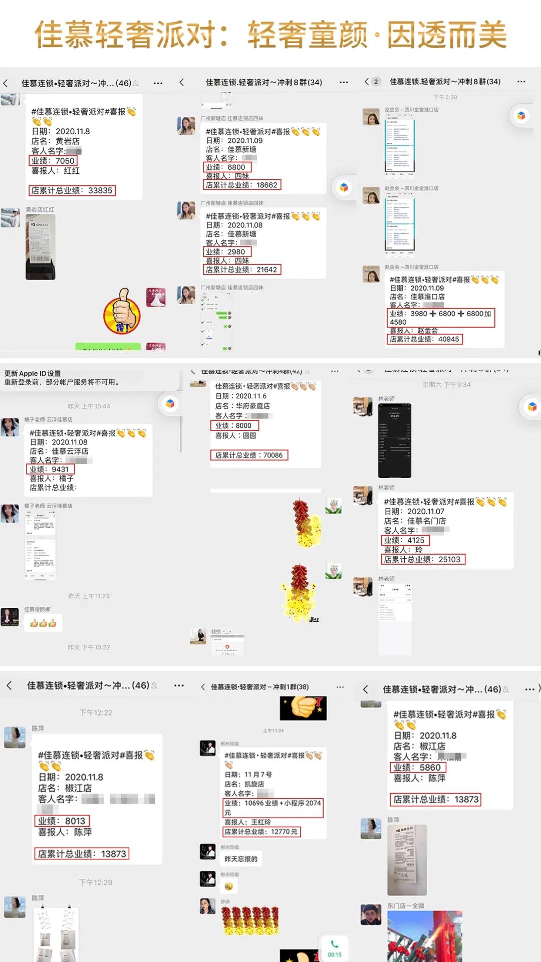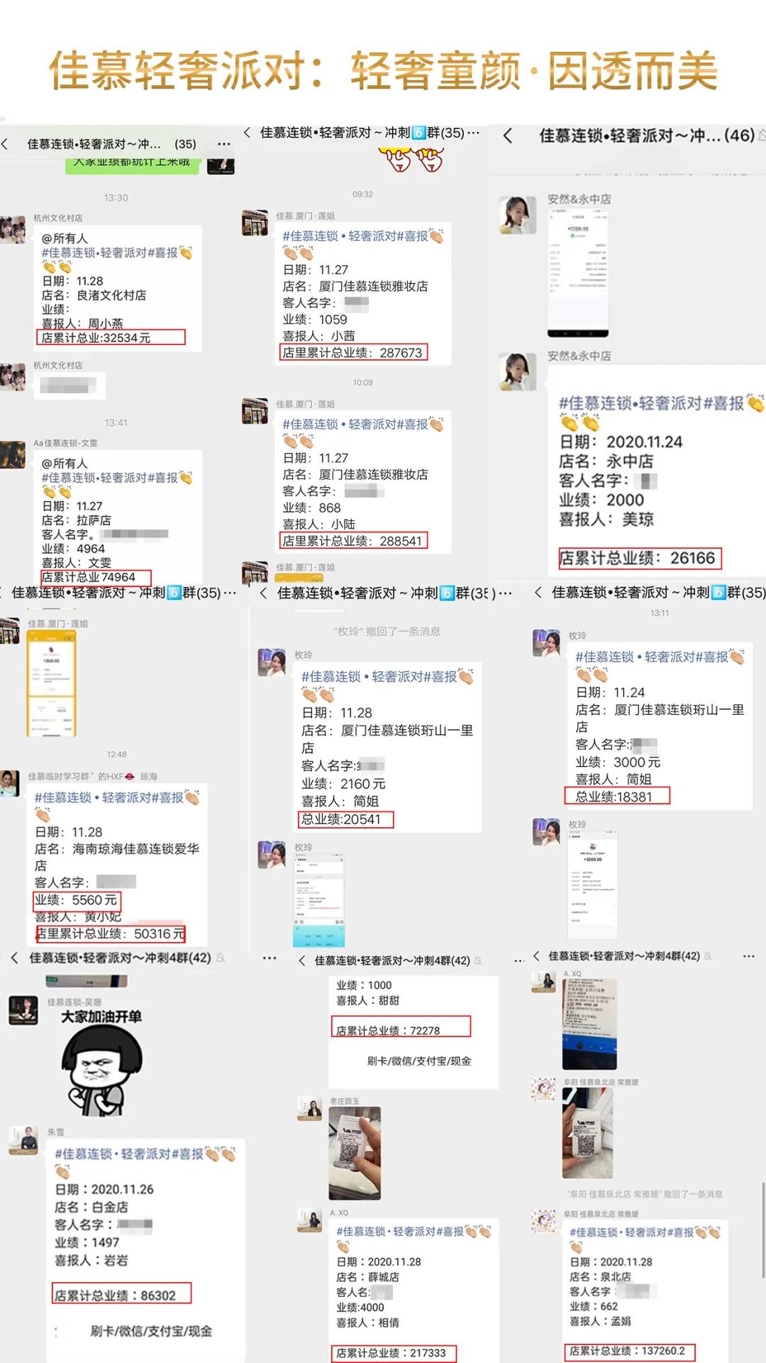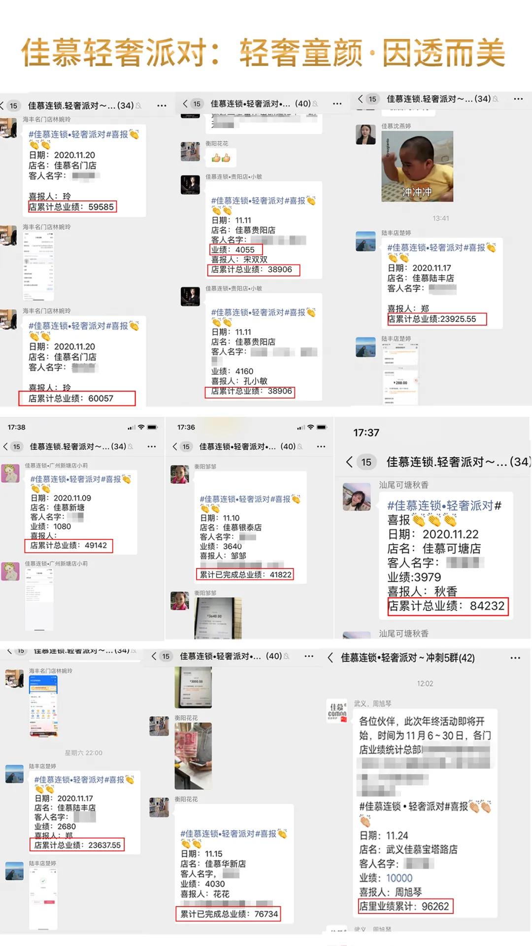 《佳慕輕奢派對 輕奢童顏·因透而美》活動于11月6日拉開帷幕,11月30日完美收官!在這25天里,全國各地佳慕專營店為慕粉舉辦了一場精彩的“輕奢派對 ”活動,深受全國新老慕粉的喜愛與擁簇!業績再次大爆破!