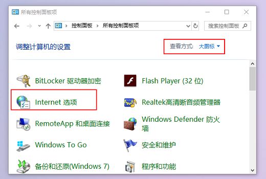 3銆侀€夋嫨澶у浘鏍?鐨勬煡鐪嬫柟寮忥紝鐒跺悗鍦ㄦ帶鍒墮潰鏉夸腑鎵懼埌Internet閫夐」銆?/p>